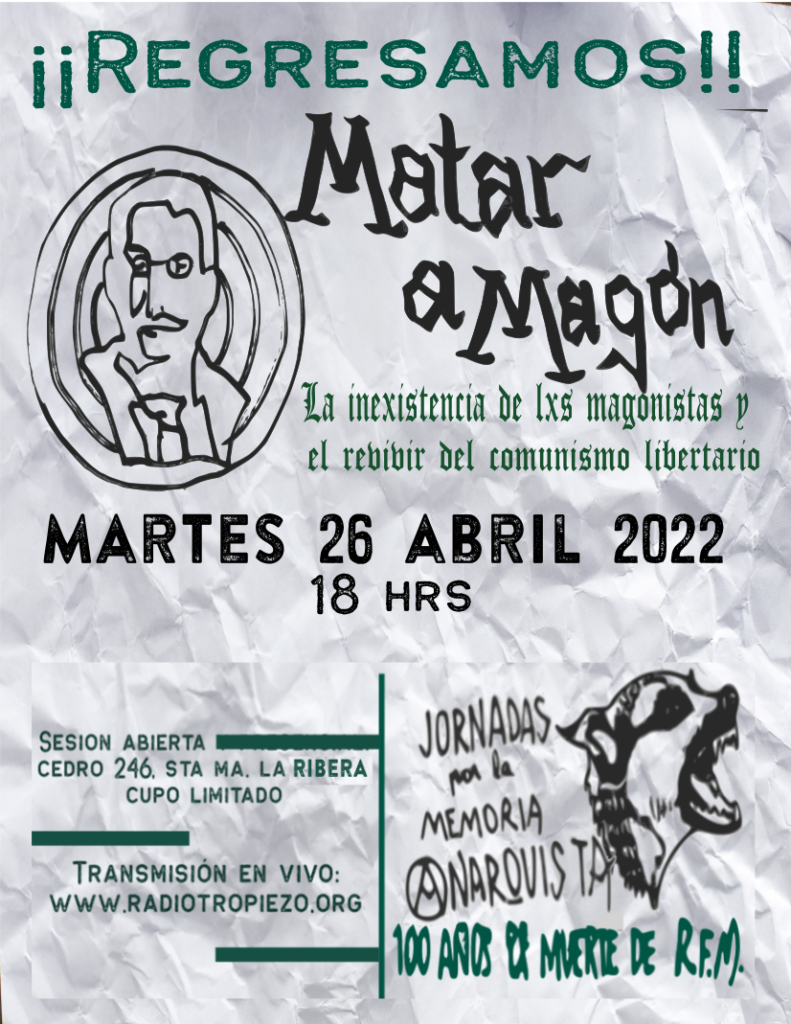 A la fecha -para las anarquistas actuales- negar el magonismo tiene diferentes implicaciones que iremos desmenuzando en este diálogo abierto dentro de las Jornadas por la memoria Anarquista, 2022