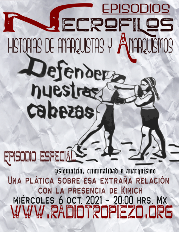 Conversando con Kinich y haciendo saltos entre el pasado y el presente, hablamos de la relación entre los primeros años de la psiquiatría y lxs anarquistas, así como a la visión cientificista del mundo anárquico. PD. La imagen hace alusión a un cartel de Psiquiatrizadxs en Lucha, colectivo contra la […]