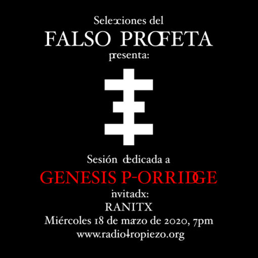 Programa dedicado a Genesis P-Orridge escuchando Throbbing Gristle y Psychic TV con intervenciones de Falso Profeta y Ranitx, leyendo fragmentos al azar […]