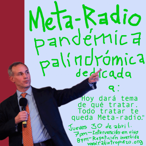 Falso Profeta leyendo un texto publicado en Post-Filia al mismo tiempo y con improvisación en vivo e inaugurando la televisión análoga en la ventana de nuestra sede únicamente para lxs vecinxs.