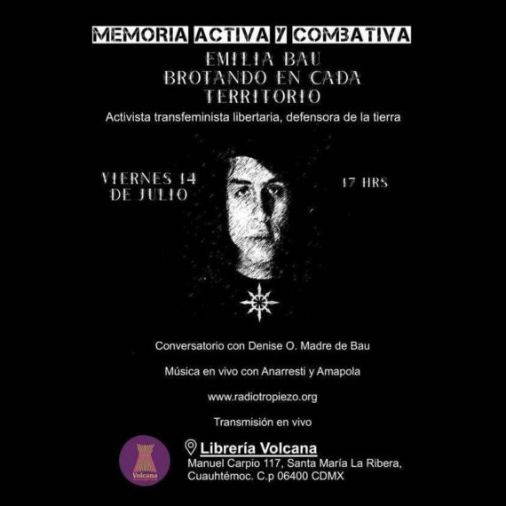 Transmisión de la plática brindada por Denise O, madre de Bau en la Librería La Volcana, Ciudad de México. Con la música de Amapola y Anarresti